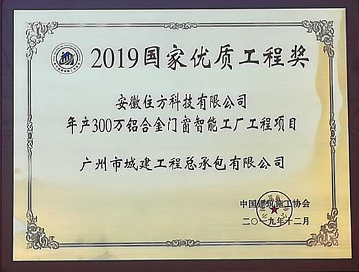 2020年1月,公司安徽住方科技有限公司年產(chǎn)300萬㎡鋁合金門窗智能工廠工程項(xiàng)目和楊家祠周邊環(huán)境微改造工程,分別榮獲"2019國家優(yōu)質(zhì)工程獎(jiǎng)"與"2019全國建筑施工安全質(zhì)量標(biāo)準(zhǔn)化示范工地"。