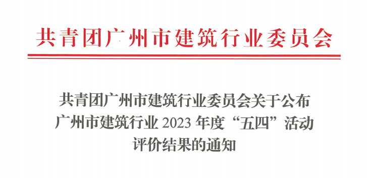 近日,廣州市建筑行業(yè)委員會舉辦廣州市建筑行業(yè)2023年度“五四”評選活動,對企業(yè)團組織、團員、團干部等日常團務管理工作進行考察評定。公司積極申報,經(jīng)評審委員會綜合評定和公示,成功評為“廣州市建筑行業(yè)五四紅旗團(總...