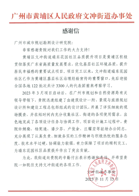 近期,公司陸續(xù)收到多個項目業(yè)主和配合單位發(fā)來的感謝信,黃埔區(qū)文沖街道辦-瑞東花園社區(qū)品質(zhì)提升項目、十六中學(xué)-校本部飯?zhí)酶脑祉椖?、花都赤坭?zhèn)政府-美麗圩鎮(zhèn)全過程咨詢項目、廣州市公安局打私隊-廣園中路805號大院室...